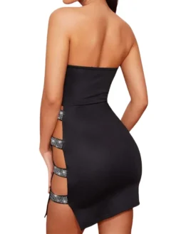 Women Sexy Pencil Dress Strapless Rhinestone Hollow Out Bodycon Short Dress Evening Party Club Elegant Summer Dresses