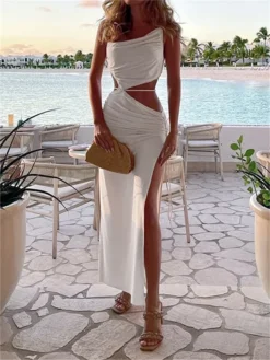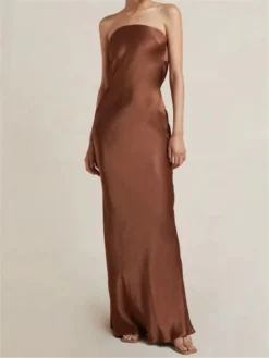 Women Evening Party Long Dress Backless Cut Out Strapless Straight Dress Summer Sexy Elegant Dresses