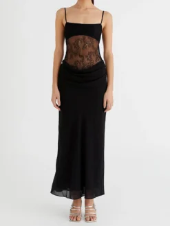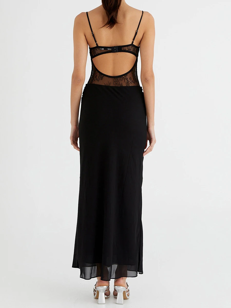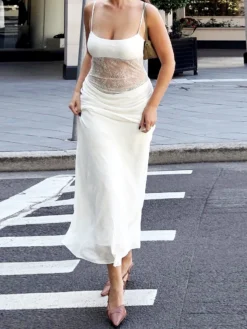 Women’s Summer Long Cami Dress Sleeveless Open Back Lace Patchwork Beach Dress
