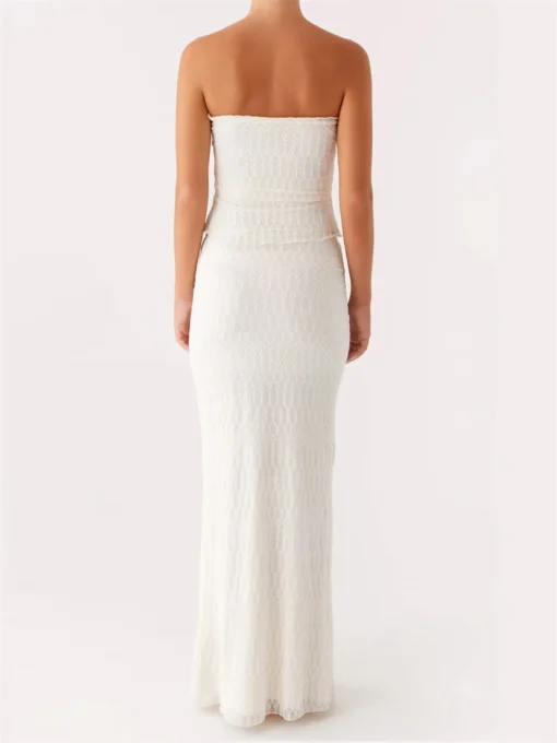 Summer outfit for women in solid colors; Women’s bandeau with drawstring front, strapless, crop length; Women’s skirt with elastic waist and drawstring, ankle length to show off your charming curves