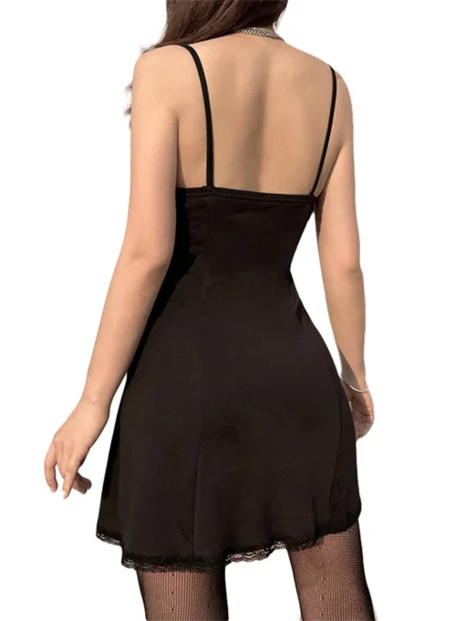 Sleeveless spaghetti strap dress, bowknot decor, contrast color, lace trim, simple and stylish.