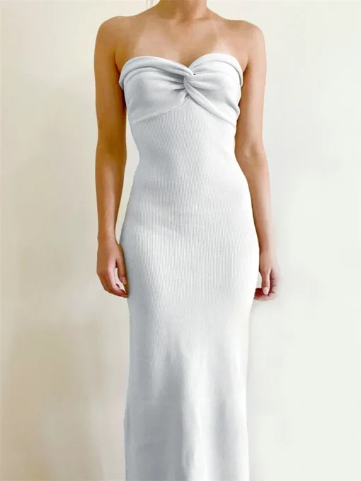 Womens Slim Dress Solid Color Cross Off Shoulder Design Knit Versatile Elegant Cocktail Dress