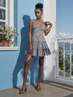 Women’s Ruffle Hem Cami Dress Sleeveless Spaghetti Strap Deep V Neck Mini Dress Going Out Dress