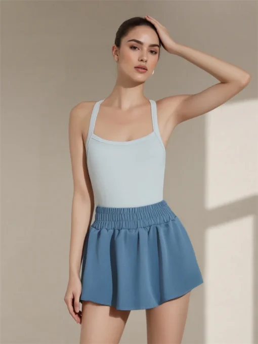 Women’s Tennis Dress Skorts Underneath Solid Color Sleeveless Athletic Dresses Workout Golf Dress