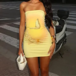 Women’s Mini Bandeau Dress Sleeveless Off Shoulder Butterfly Print Tube Top Dress